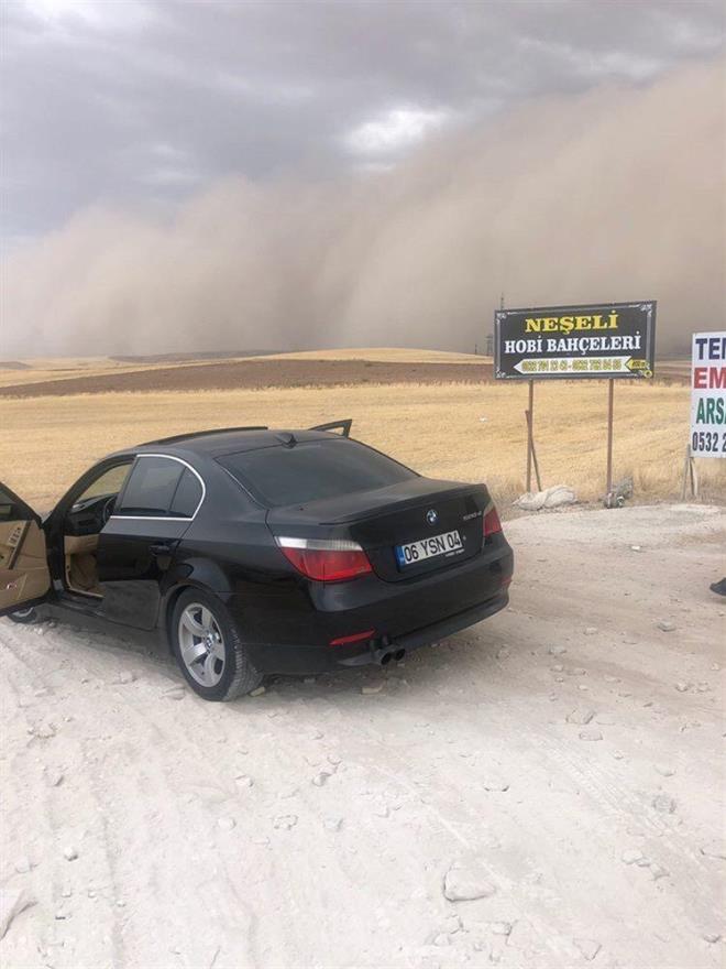 Öte yandan, ev ve araçların toz içinde kaldığı, sert rüzgarların estiği görüldü.