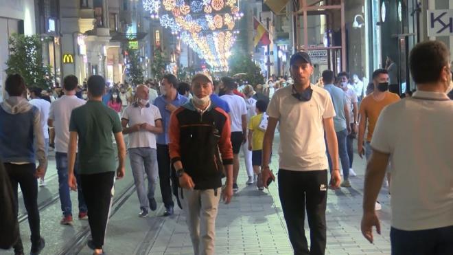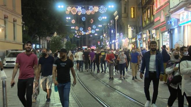 Artan Coronavirüs vaka sayılarına rağmen Beyoğlu İstiklal Caddesi'nde yoğunluk yaşandı.