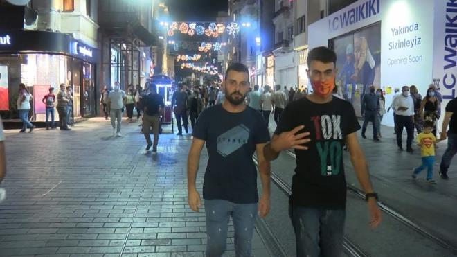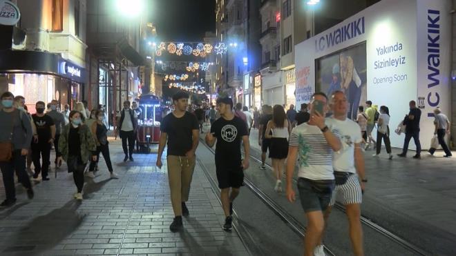 Beyoğlu İstiklal Caddesi'nde artan Coronavirüs vaka sayısına rağmen yoğunluk yaşanırken bazı vatandaşların maske takmadığı görüldü.
