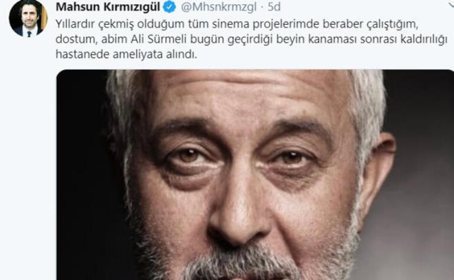 Yıllardır çekmiş olduğum tüm sinema projelerimde beraber çalıştığım, dostum, abim Ali Sürmeli bugün geçirdiği beyin kanaması sonrası kaldırıldığı hastanede ameliyata alındı.
