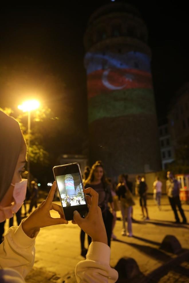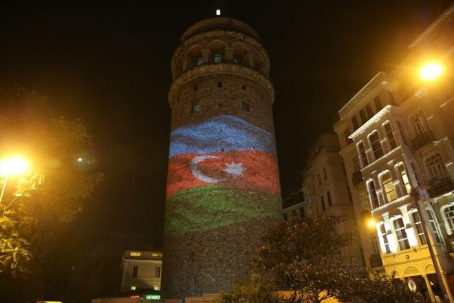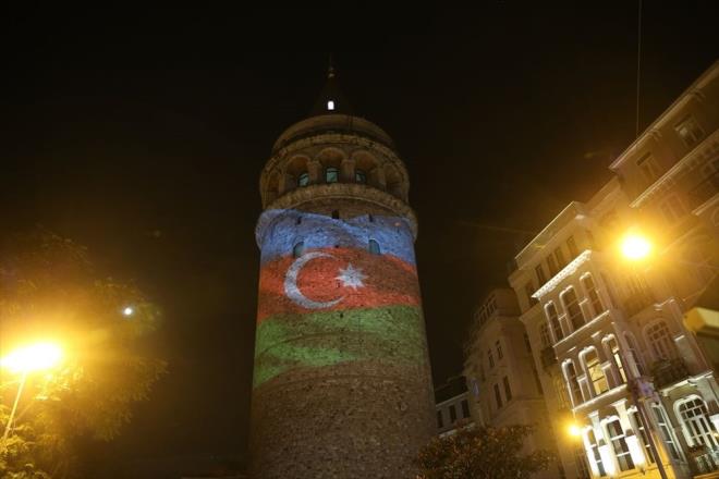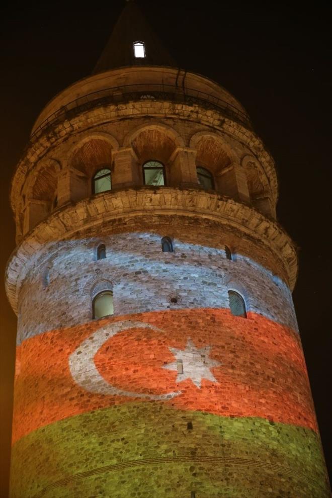 Kültür ve Turizm Bakanlığı tarafından Galata Kulesi'ne Azerbaycan Bayrağı yansıtıldı.