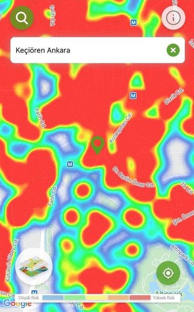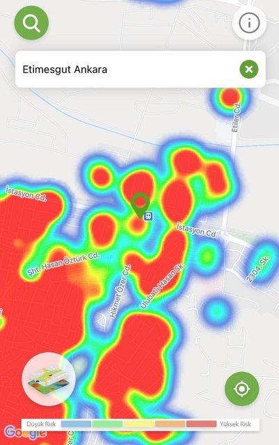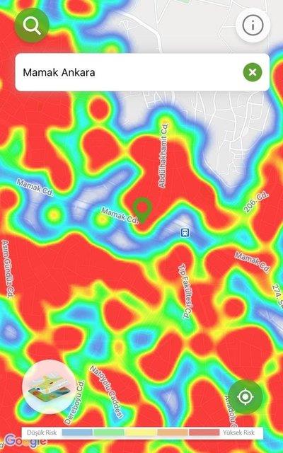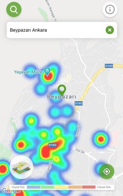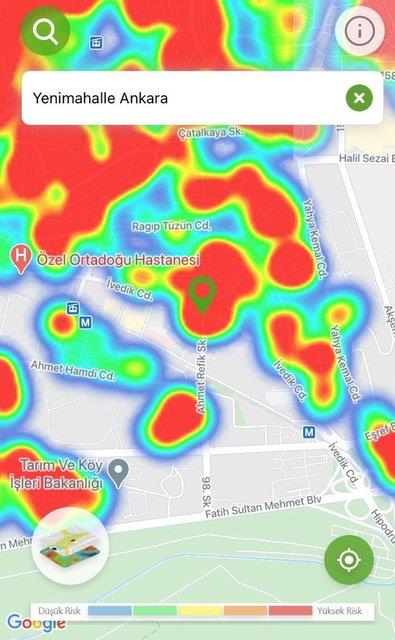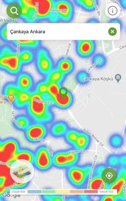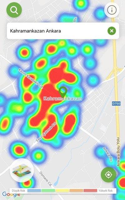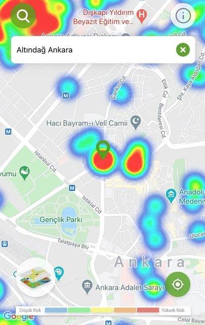 İşte Hayat Eve Sığar (HES) uygulamasına göre Ankara'daki koronavirüs haritası...