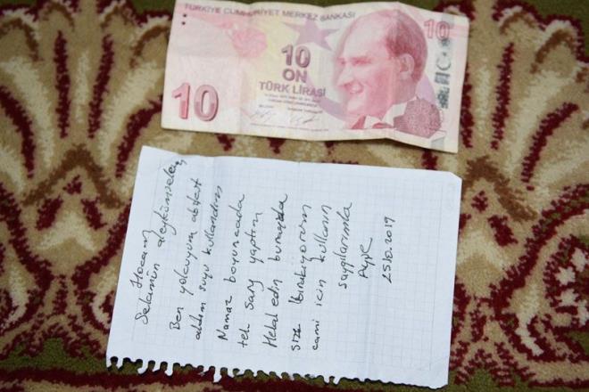 22 Ekim 2019 yılında bırakılan para ve not, bu yıl camide yapılan temizlik esnasında bulundu. Halının altından çıkan para ve not, okuyanları duygulandırdı.