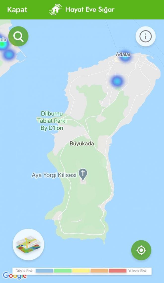 Uygulamaya göre İstanbul ilçelerindeki en riski bölgeler Bağcılar, Kağıthane, Küçükçekmece, Esenler, Zeytinburnu, Eyüpsultan, Güngören ve Şişli olurken, Tuzla, Kadıköy, Silivri, Çatalca, Şile ve Sarıyer daha düşük riskli bölgeler olarak görüldü -