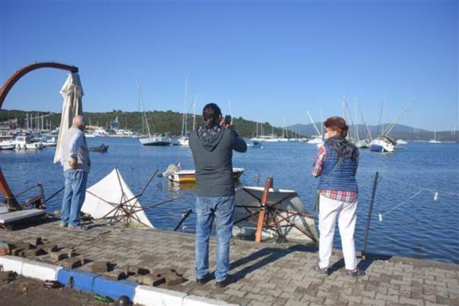 İzmir'in Seferihisar açıklarında meydana gelen depremin ardından, deniz suyunun taştığı Sığacık'ta, bugün denizin çekildiği görüldü. Öte yandan halen deniz seviyesinin normalden yarım metre düşük olduğu belirtilen Seferihisar'daki tüm tekne sahiplerine olay yerine gelmeleri çağrısı yapıldı.