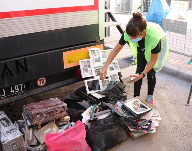 Enkaz altından depremzedelere ait mutlu anıların yer aldığı fotoğraflar çıkıyor. Ekipler, o fotoğrafları ve albümleri yıkıntılar arasından tek tek toplayıp daha sonra sahipleri ve yakınlarına ulaştırılmak üzere bir kenara ayırıyor.
