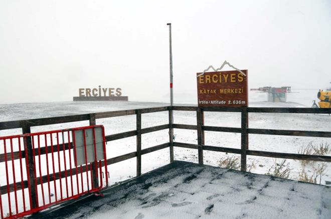 Kar yağışı, sabah saatlerinde 2200 rakımlı Erciyes Kayak Merkezi'nde de etkili oldu. Kayak merkezi, kar yağışı ile birlikte beyaza büründü.