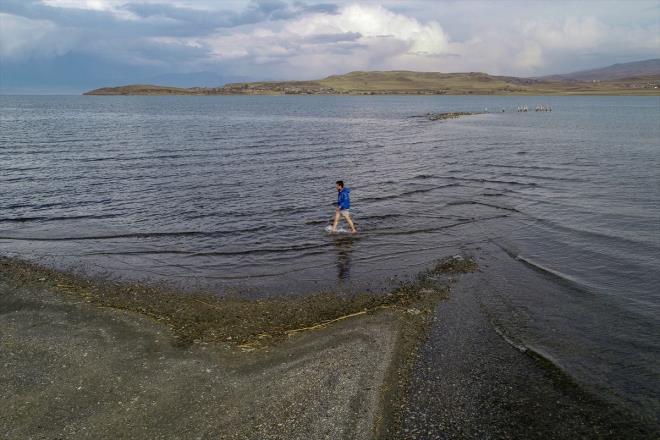 Eşsiz güzelliği, masmavi görüntüsü, sodalı suyu ve sahilleriyle bölgenin en önemli değerlerinden Van Gölü'nün kıyı kesimlerinde mevsimsel değişimler nedeniyle su seviyesi azaldı.