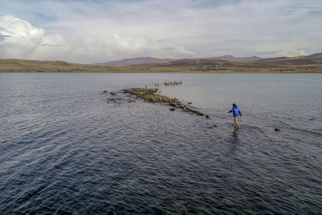 VAN Gölü'nde, suların çekilmesiyle Osmanlı dönemine ait olduğu değerlendirilen iskele kalıntısı ortaya çıktı.