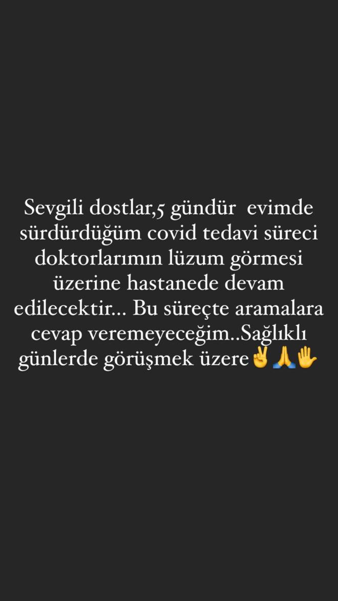 5 gündür koronavirüs tedavisi gören Onur Akın, sağlık durumu hakkında açıklama yaptı. Tedavisinin hastanede devam edeceğini belirten Akın, "Sevgili dostlar, 5 gündür evimde sürdürdüğüm Kovid tedavi süreci, doktorlarımın lüzum görmesi üzerine hastanede devam edilecektir. Bu süreçte aramalara cevap veremeyeceğim. Sağlıklı günlerde görüşmek üzere." ifadelerini kullandı.