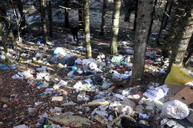 Hayvanların otladığı ormanlara atılan şişe, moloz, lavabo ve ev eşyası gibi atıkların görüntüsü tepki çekiyor.