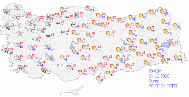 Sabah ve gece saatlerinde iç ve doğu bölgelerde buzlanma ve don olayı ile birlikte yer yer pus ve sis bekleniyor.