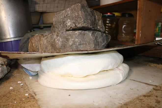Köyde yaşayan bazı kadınlar inek sütünden elde ettikleri peynirleri önce büyük bir taşın altına bırakıyor. Ardından peynirleri bidonlara dolduran kadınlar, evlerinin mahzen kısmında peynirleri kuma gömüyor.