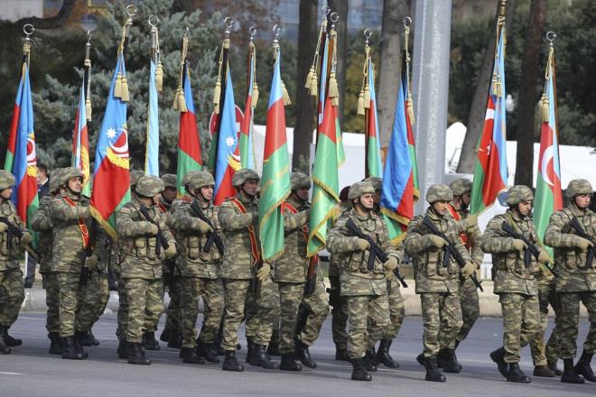 Azerbaycan ordusunun Dağlık Karabağ'da elde ettiği zafer dolayısıyla başkent Bakü'de zafer kutlaması düzenlendi. Cumhurbaşkanı Erdoğan'ın da katıldığı askeri geçit töreninde Türk askerleri de yer aldı.