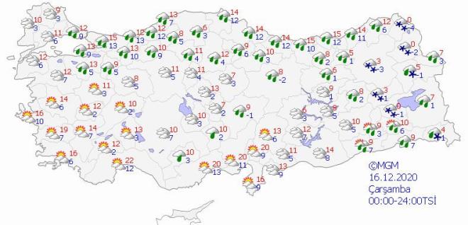 İstanbul'da havanın ise hafta sonuna kadar parçalı, yer yer çok bulutlu olması ve aralıklı sağanak görülmesi bekleniyor. Yağışların, salı günü Anadolu Yakası'nda yer yer kuvvetli gerçekleşeceği tahmin ediliyor. Hava sıcaklığının en düşük 8-10 derece, en yüksek 12-14 derece civarında olması öngörülüyor.
