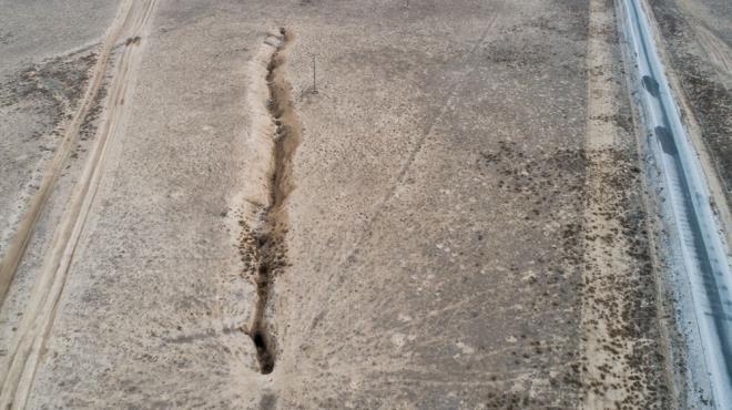 Arazide yapılan incelemelerde genişliği yer yer 10 metre, derinliği 8-10 metre arasındaki yarıklar incelendi.