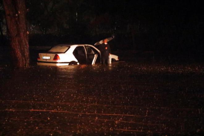 İtfaiye ekipleri su birikintisi nedeniyle yolda mahsur kalan servis aracı içerisindeki 4 kişiyi bot yardımıyla kurtardı.