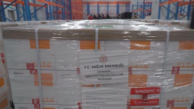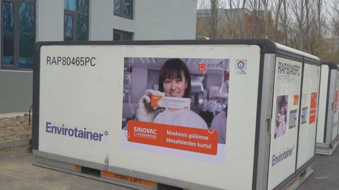 Türkiye'ye gelecek CoronaVac aşısının üretildiği merkez ve Türkiye için hazırlanan aşılar görüntülendi.