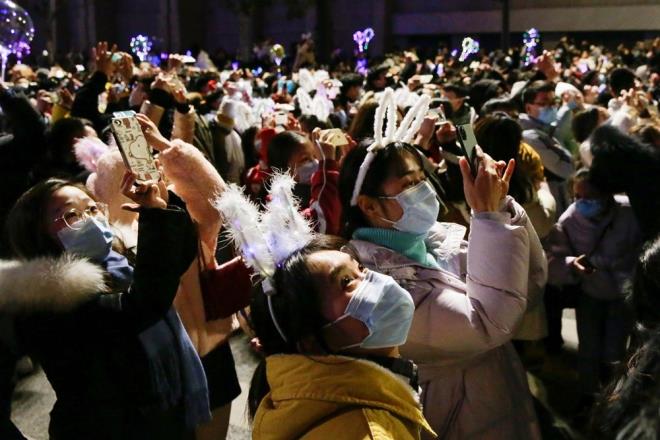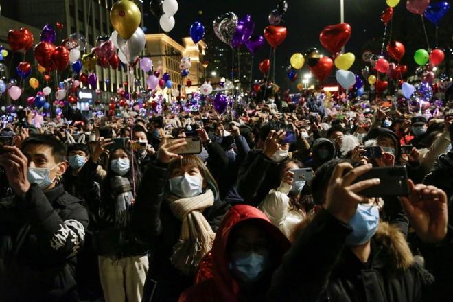 Corona virüs salgınının başladığı yer olan Wuhan'da binlerce kişi yeni yılı kutlamak için toplandı.