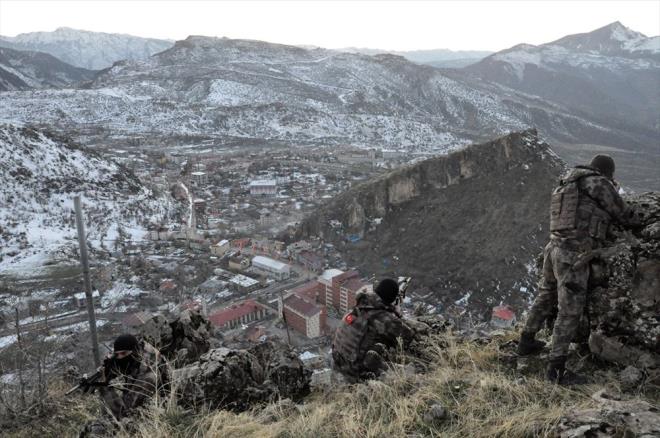 Kent merkezindeki hakim tepelere konuşlu noktalarda ve Çukurca ilçesindeki Kiyeris Tepe Üs Bölgesi'nde görevli özel harekat polisleri, fedakarca vatan savunması yapıyor.