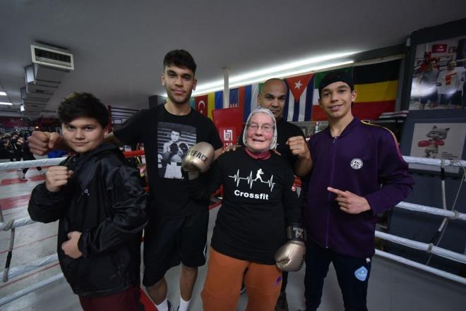 KISITLAMA OLMADIĞI SAATLERDE ANTRENMAN Boks sevgisinin aynı zamanda hastalığının tedavisine de olumlu katkıları olduğunu anlatan Naciye Hanım, ?Hareketler çok kolay gelmeye başladı. Parkinson hastalığının iyi olması için hareketli olacaksınız. İlaç yetmiyor. Haftanın üç günü, 1.5 saat çalışıyorum. Boksa gelmeden önce 90 derece eğilerek, sopayla yürüyordum, şimdi karşıma bakarak yürüyorum. Parkinsona karşı şampiyon olmak istiyorum. Boks yaparak, her gün parkinson hastalığımla savaşıyorum. Sporla kendimi toparlıyorum. Boks tutku oldu, çok seviyorum. Antrenman saatini kaçırmıyorum. Sabah mutlu kalkıyorum, salona geleceğim için heyecanlanıyorum. Her gün antrenman yapmak istiyorum" diye konuştu.