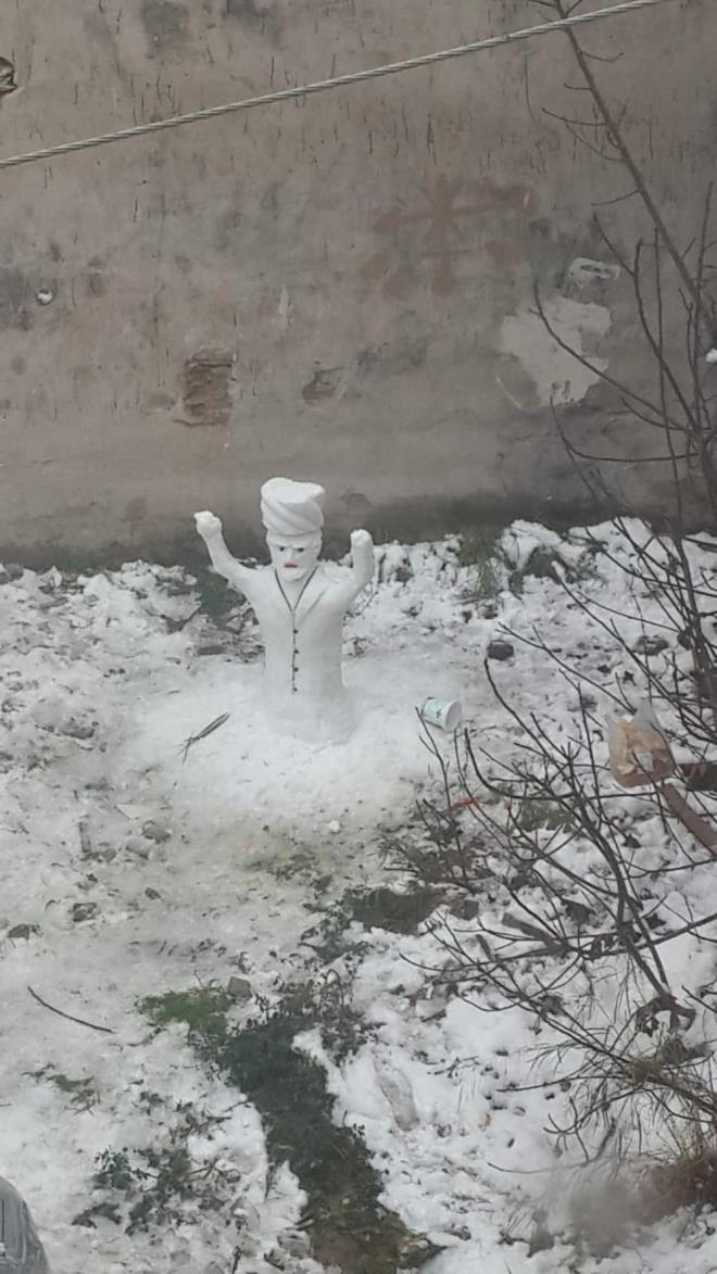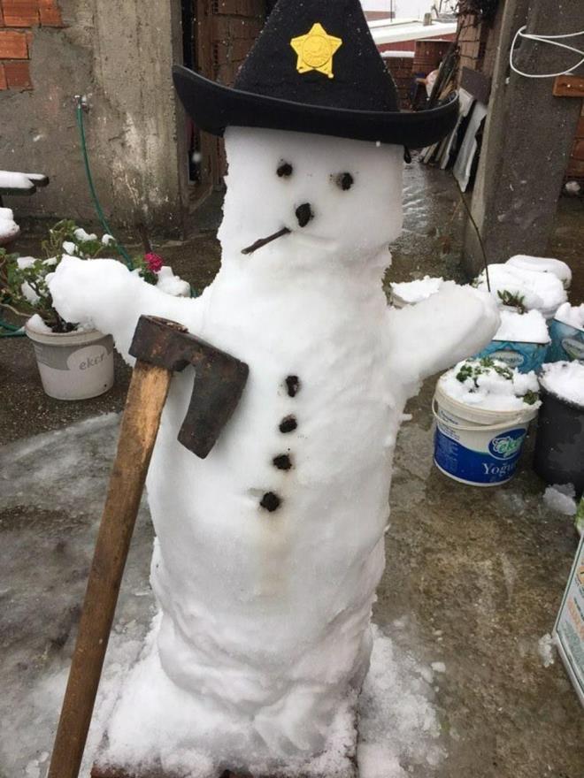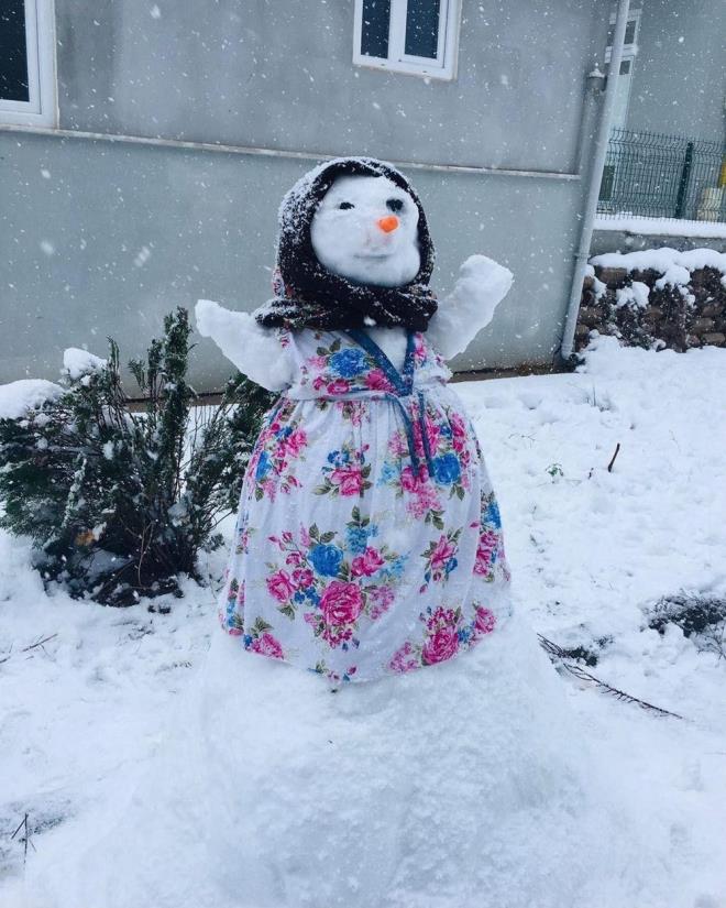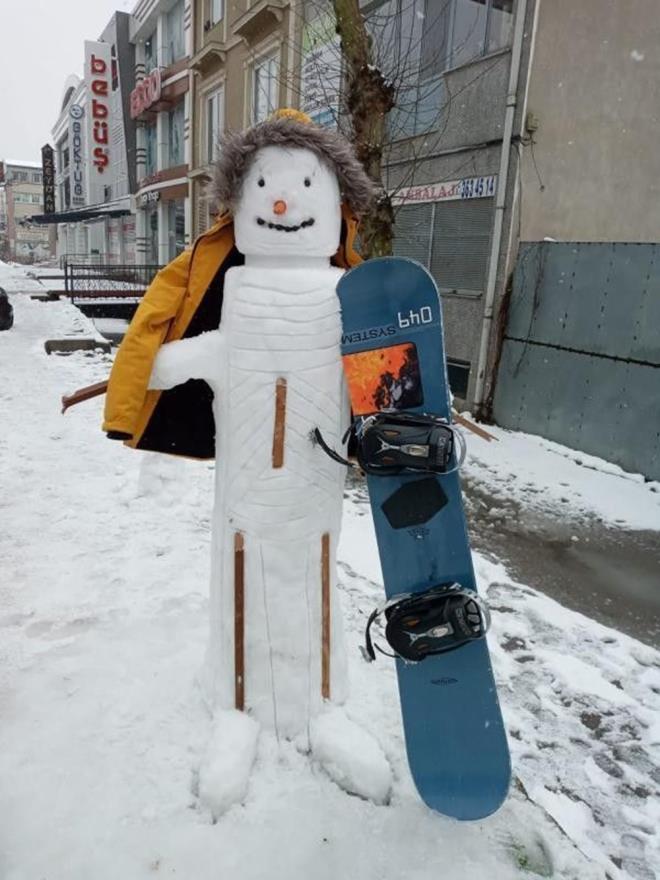 Uzun süre sonra karla buluşan vatandaşların yaptıkları birbirinden ilginç kardan adamlar insanları gülümsetirken sosyal medyada paylaşılan görüntülerde büyük ilgi gördü.