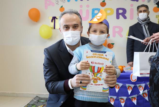 Hiçbir anaokulu ve kreşin anne sıcaklığını veremeyeceğini hatırlatan Başkan Aktaş, ?Ama biz Ana Kucağı?nda çocuklarımıza annelerinin yakınlığını ve sıcaklığını göstermeye çalışıyoruz. Rakamlar da düşmeye başladı. Temennimiz inşallah herhangi bir sıkıntı olmadan ikinci yarıyılda yüz yüze olmak kaydıyla senenin sonuna kadar çocuklarımıza eğitim vermek, onları geleceğe hazırlamak. Bugün aynı zamanda karne tatili dolayısıyla çocuklarımıza çeşitli hediyeler ve bağışıklıklarını güçlendirmek için de C vitamini destek paketleri verdik. Ben çocuklarını bize emanet ettikleri için tüm anne babalara teşekkür ediyorum. Ana Kucağı güçlenerek büyümeye devam edecek. Bundan kimsenin şüphesi olmasın? dedi.