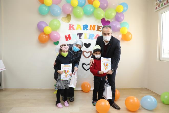 Büyükşehir Belediye Başkanı Alinur Aktaş da beraberindeki Bursa Milletvekili Emine Yavuz Gözgeç ile birlikte Hamitler Ana Kucağı Eğitim Merkezindeki çocukların karne heyecanına ortak oldu. Miniklerle sohbet eden Başkan Aktaş, çocukların karnelerini de Milletvekili Gözgeç ile birlikte dağıttı. Çocuklara karnelerinin yanı sına çeşitli hediyeler ve C vitamini destek paketleri verildi.