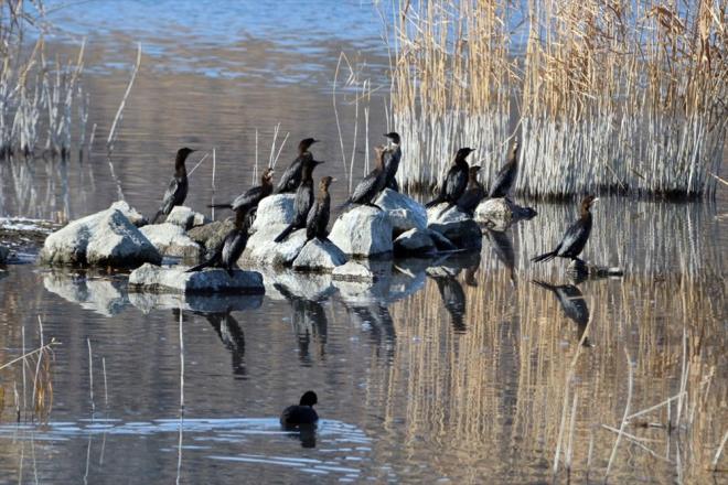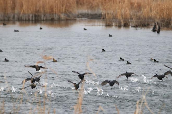SULAK ALANLAR SOĞUK HAVAYA RAĞMEN KUŞLARLA ŞENLENİYOR Patka, gri balıkçıl, sakar meke, çamurcun, saz tavuğu, batağan, kızıl şahin, saz delicesi ve karabatak başta olmak üzere birçok kuş türünün görülebildiği Ağrı Dağı Milli Parkı'ndaki sulak alanlar, bölgedeki dondurucu soğuklara rağmen canlılığını koruyor.