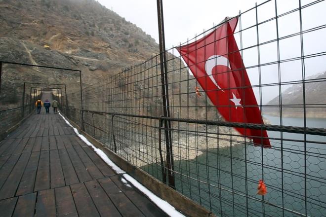 "YOLUMUZ YARIM SAATE DÜŞTÜ BU KÖPRÜYLE" 2009 yılındaki kazada baraj gölünde hayatını kaybeden vatandaşın çocuğu olan Hüseyin Tokel (57) ise ?Küçüklükten beri buradayım. Doğma büyüme Araköylüyüm. 2009 yılının 26 Haziran tarihinde Afrika?da olan hortum gibi bir hortum vurdu köprüye. Köprü o zaman bu şekilde muntazam değildi. Köprünün yanındaki halatı düşünce babam da baraj gölüne düştü. İstanbul?daki boğaz köprüsüne benzetiyorlar burayı. Bir taraf Araköy yakası, bir taraf Karaçukur yakası. Köyden eskiden yürüme 3,5 saatte giderdik şimdi yarım saate düştü bu köprüyle? şeklinde konuştu.