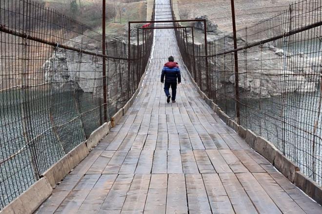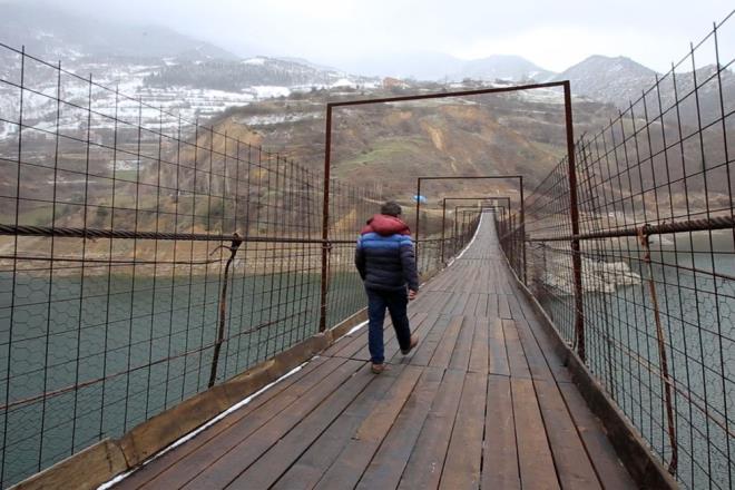 "OKULA BU KÖPRÜYÜ GEÇEREK GİTTİK" Araköy sakinlerinden 26 yaşındaki Tunahan Yavuz da baraj yapılmadan önce derede çifte köprüler olduğunu, baraj su tuttuktan sonra altında kaldığını ve yollarının uzadığını belirterek, ?Köprülerimiz barajın altında kalınca, yolumuz uzayınca 3,5 saatlik bir hal aldı yolumuz. Bu köprü bizim köyden Kürtün?e inmemiz, Gümüşhane?ye ulaşmamızda en önemli rol oynayan ulaşım aracı haline geldi. Ortaokul ve liseye bu köprüden geçerek gittik. 7?de evden çıkıyordum, yarım saat içinde derste oluyordum. Ana yolu kullansak 3,5 saatlik bir yolumuz var. Oradan yürüme şansımız yok? şeklinde konuştu.