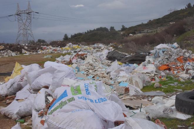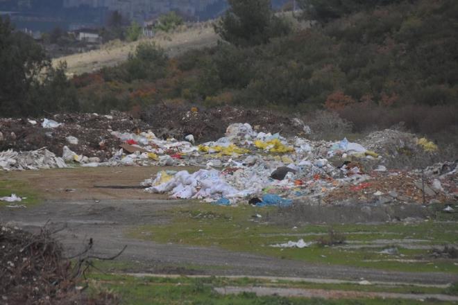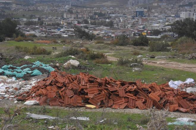 Metrelerce uzayan ve küçük çaplı dağ olan moloz ve hafriyatlar arasında kamyon tekerleğinden kiremite, ayakkabıdan klozete binlerce atık bulunuyor.