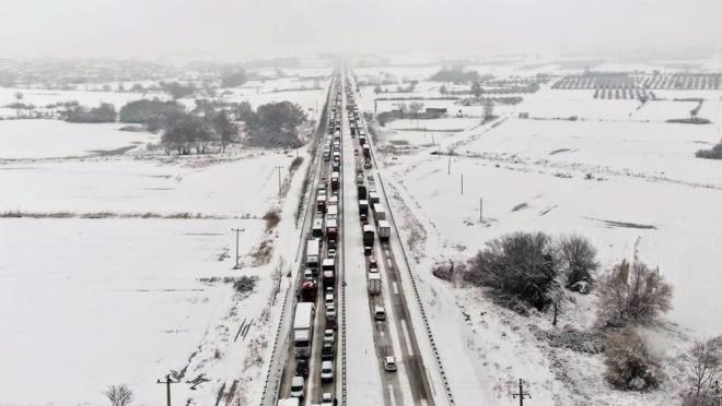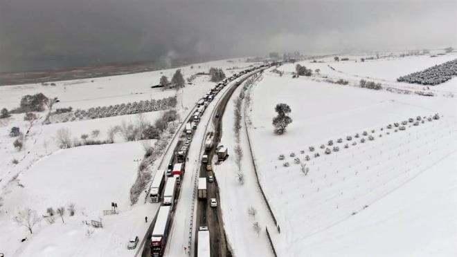 Şuanda Bursa-İzmir karayolunda yüzlerce araç ve kamyon kapanan yolda mahsur kaldı.