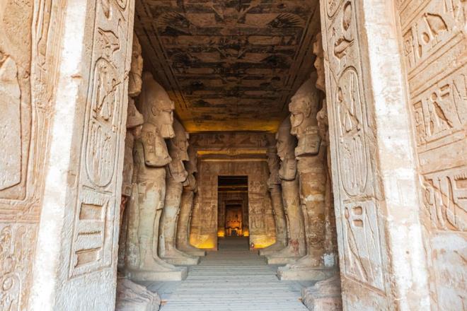Asvan'da dağın içi oyularak 20 yılda yapılan Ebu Simbel Tapınağının kapısında 4 dev Ramses heykeli bulunuyor.