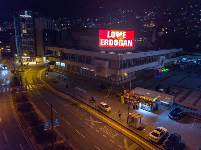 Saraybosna'nın farklı noktalarında bulunan Dom Mladih ve Sara alışveriş merkezinin reklam panolarında Erdoğan için "Love Erdoğan" ilanına yer verildi.
