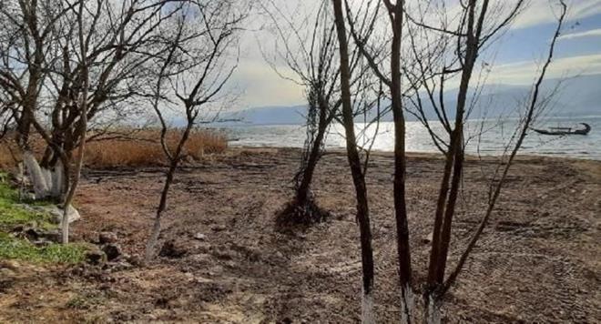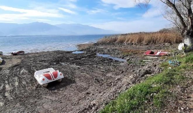 Gölde suların yaklaşık 50 metre çekilmesiyle rıhtımlar ortada kaldı.