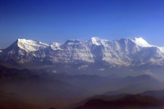 Asya'nın orta güney kısmında, doğu batı doğrultusunda uzanan dünyanın en büyük ve en yüksek sıradağları arasında bulanan Himalaya Dağları, uçaktan görüntülendi.