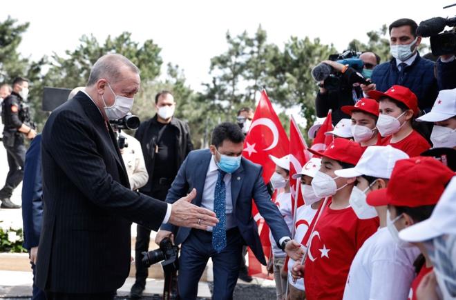 Cumhurbaşkanı Recep Tayyip Erdoğan, Çamlıca Camii'ndeki cuma namazının ardından Çamlıca tepesine geldi. Erdoğan, 23 Nisan Ulusal Egemenlik ve Çocuk Bayramı dolayısıyla, 111 metre büyüklüğündeki Türkiye'nin en büyük bayrak direğine Türk bayrağına çekme törenine katıldı.