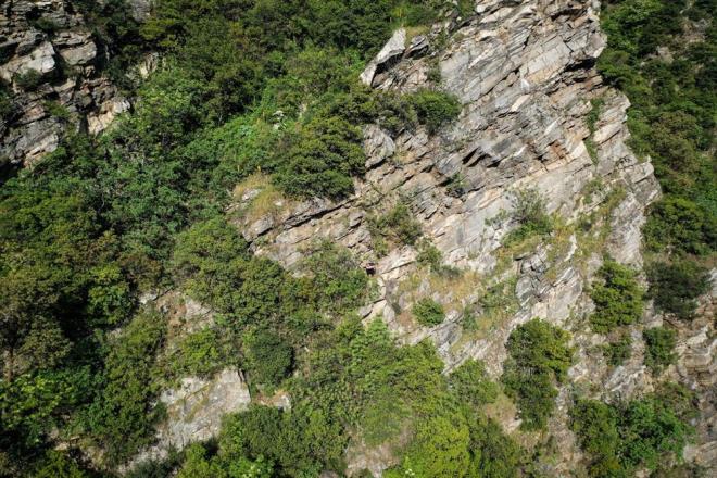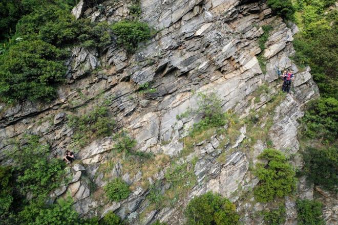 Yaklaşık 100 metre yükseklikte kurtarılmayı bekleyen kişi, ekiplerce halatla kayalıktan indirildi.