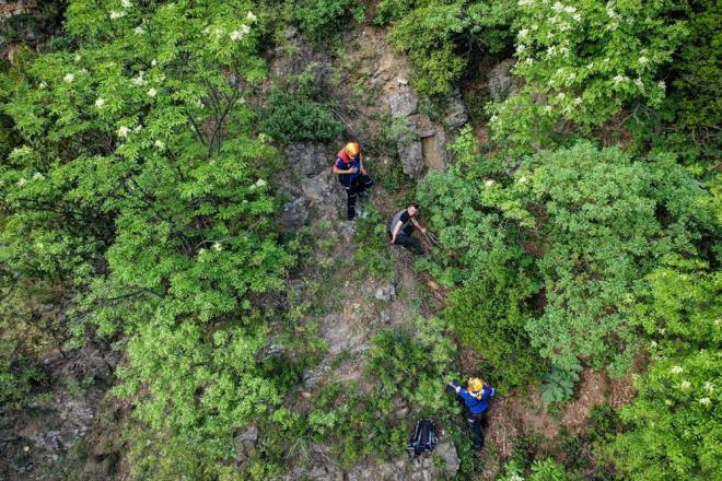 Kayalıklara tırmanan ekipler, yaklaşık 4 saatlik çalışma sonucu halat yardımıyla S.Ç'yi kurtardı.