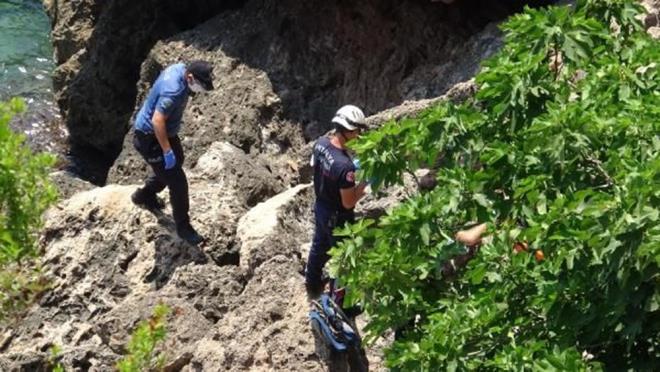 Antalya'da falezler üzerindeki İnciraltı Plajı'nda 50 yaşlarında erkek cesedi bulundu.