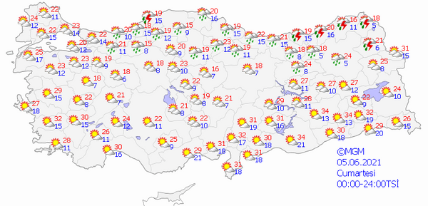 Akdeniz: Parçalı ve çok bulutlu, sabah ve öğle saatlerinde Adana, Osmaniye ve Kahramanmaraş çevreleri ile Hatay'ın kıyı, Mersin'in doğu kesimlerinin yerel olmak üzere sağanak ve gök gürültülü sağanak yağışlı geçeceği tahmin ediliyor. Yağışların; öğle saatlerinde Adana ve Mersin?in kuzey ilçeleri ile Kahramanmaraş?ın batısında yer yer kuvvetli olması bekleniyor.