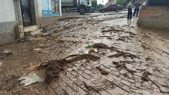 Yağışla birlikte cadde ve sokaklar yağmur sularının getirdiği çamurla ve molozlarla doldu.