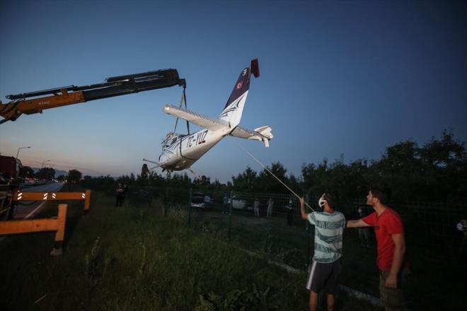 Bursa'da dün meyve bahçesine acil iniş yapan eğitim uçağı vinçle kaldırıldı. Yaklaşık bir saatlik çalışma sonucu bulunduğu yerden kaldırılan Cessna tipi uçak Yunuseli Havaalanı'na götürüldü