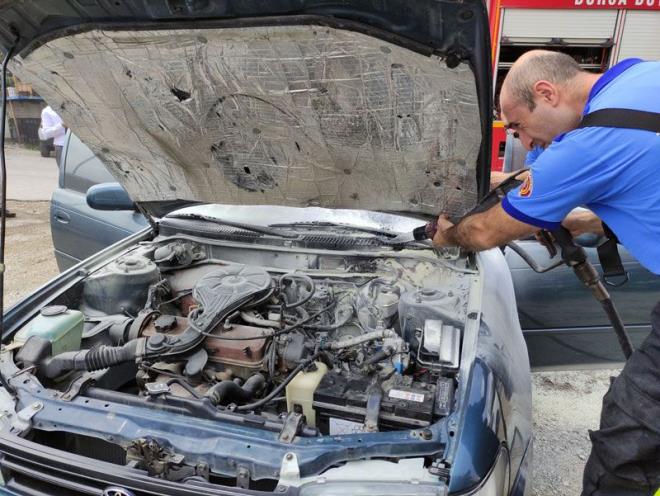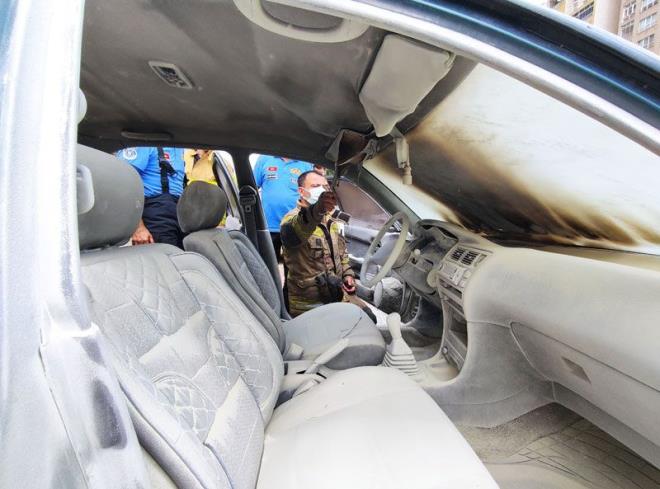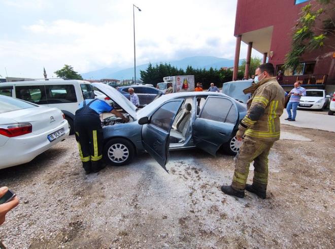 Satın alacağı araç otoparkta bilinmeyen bir sebeple alev aldı. Aracın yandığını gören otopark görevlisi yangın tüpüyle yanan araca müdahale edip yangını söndürdü.