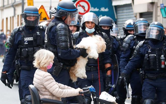 Fransa'da 14 Temmuz Ulusal Bayramı askeri geçit töreninin bitmesinin hemen ardından Covid-19 aşı zorunluluğuna ve sağlık kartı uygulamasına karşı çıkan binlerce kişi, "kahrolsun diktatörlük", "Macron istifa" sloganları atarak yürüyüşe geçti.