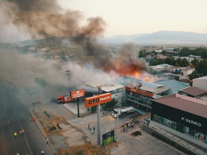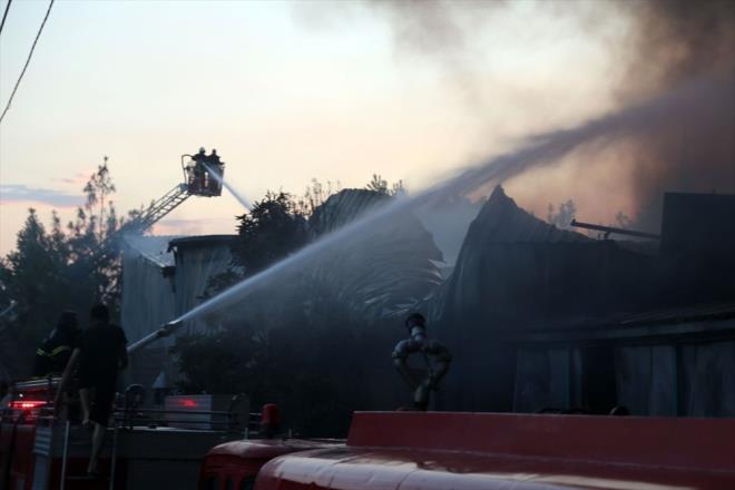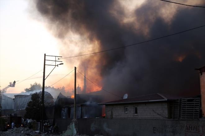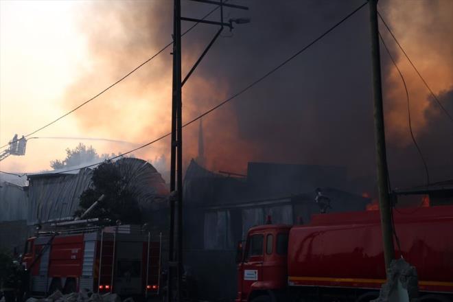 Soğutma çalışmasının devam ettiği yangın sonrası tesislerde maddi hasar oluştu.