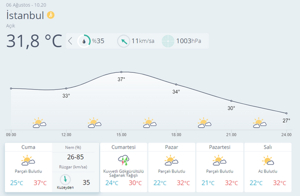 İstanbul Valiliği'nden yapılan açıklamada da, "İstanbul?da Meteoroloji?nin değerlendirmelerine göre; yarın (7 Ağustos) yerel kuvvetli olarak sağanak ve gök gürültülü sağanak yağışlar bekleniyor. Ani sel, su baskını, dolu yağışı, kuvvetli rüzgara karşı dikkatli ve tedbirli olunmalıdır" denildi. -