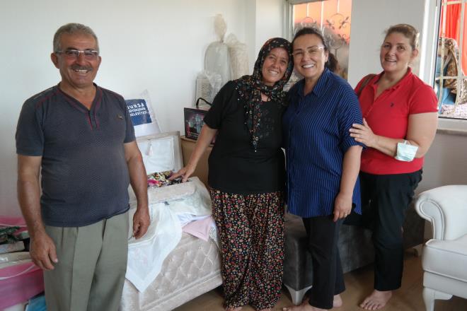 Bursa Büyükşehir Belediye Başkanı Alinur Aktaş?ın talimatıyla harekete geçen BUSMEK kursiyeri kadınlar, Gülsüm Uysal'ın kızı için el emeği, göz nuru döküp, harika bir çeyiz seti hazırladı. Hazırlanan çeyizler, BUSMEK eğitmenlerinden Zehra Altınöz'ün koordinasyonunda Gülsüm Uysal'a teslim edildi. Yangının şokunu hala yaşayan Gülsüm Uysal'ın yüzünde günler sonra bir gülümseme oluşurken, çaresiz kadın başta Bursa Büyükşehir Belediye Başkanı Alinur Aktaş olmak üzere, emeği geçen herkese teşekkür etti. Felaket anlarında yaşadıklarını anlatan Uysal, 'Babamın evinden kendi evime gelene kadar alevler bütün evi sardı. Müdahaleye kimsenin zamanı olmadı. Canımızı zor kurtardık. Allah razı olsun Başkanım geldi, dinledi bizi. Allah ondan bin kere razı olsun. Söz verdi ve sözünü yerine getirdi. Nasıl dua edeyim ki tarifi olur mu? Kimin emeği geçtiyse ellerinden öperim. Biz bu felaketi yaşadık, başka kimse yaşamasın' dedi. -