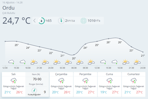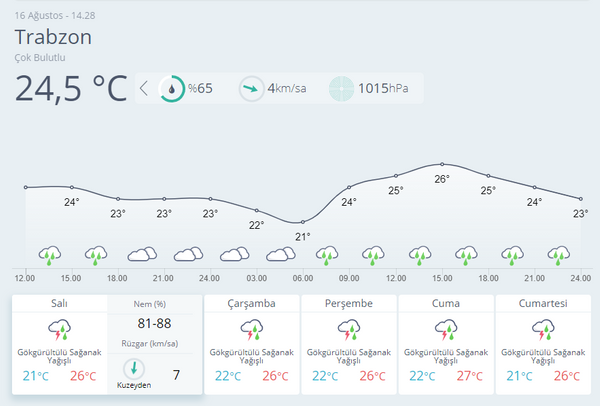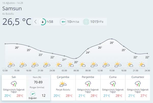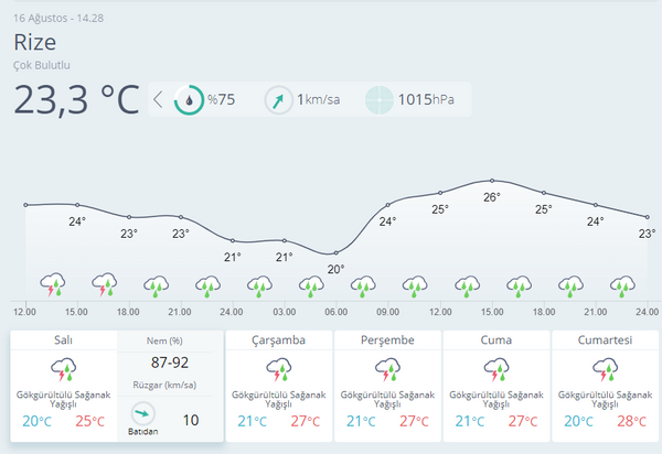 Meteoroloji Genel Müdürlüğü, Trabzon-Rize çevrelerinde sağanak beklentisi olduğunu duyurdu. 16 Ağustos hava durumu raporunda İstanbul'a da gün verildi. İşte Ankara, İzmir, Antalya, Adana ve birçok şehirde hava durumu...